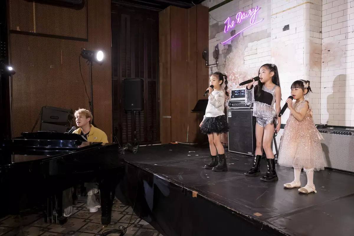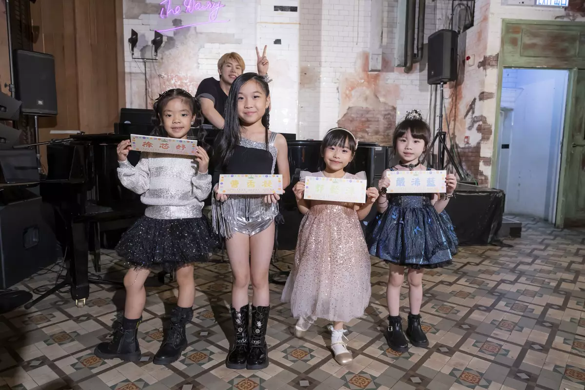 莫凱謙與三位小歌手(6-8歲)合唱凡星。
