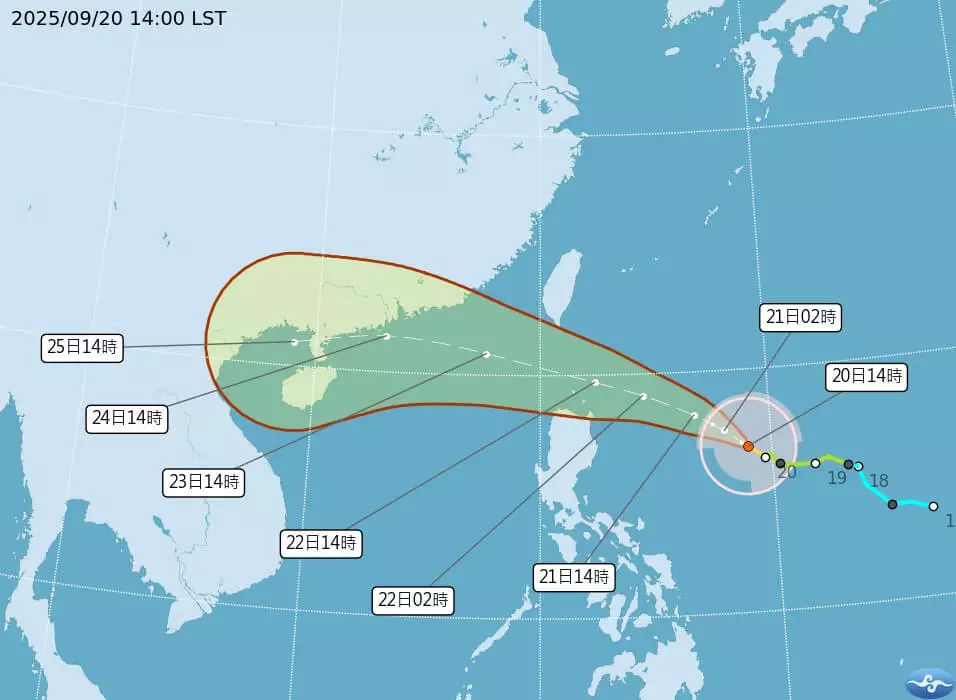 受樺加沙及其外圍環流影響,周一及周二兩日蘭嶼、綠島、屏東縣局部地區可能出現11級以上陣風。