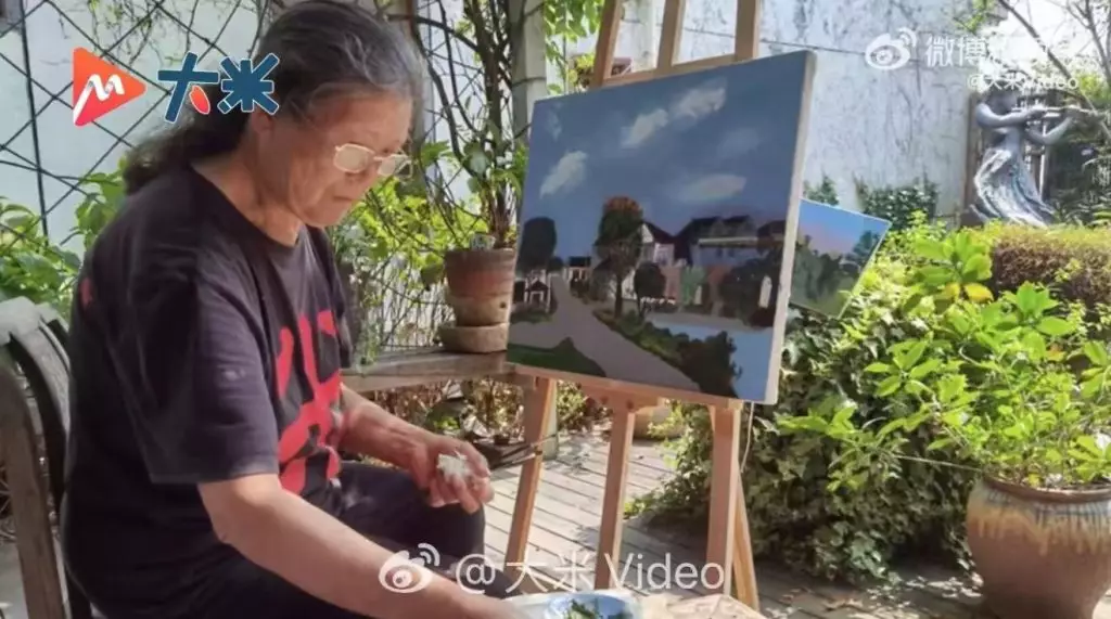 上海一名7旬婆婆接受直腸癌手術後無法再務農開始學繪畫,9年來創作逾300幅獲稱「油畫奶奶」。