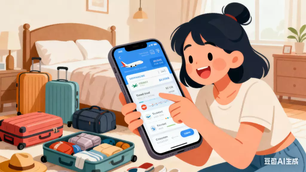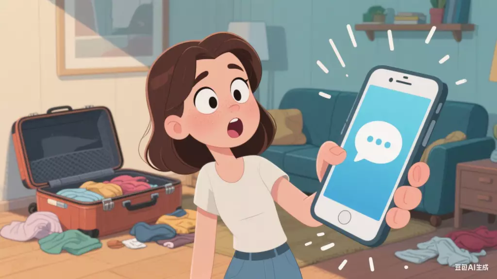 女事主原本與男友安排好下周出發旅行,卻突然收到其母親傳來訊息。AI生成圖