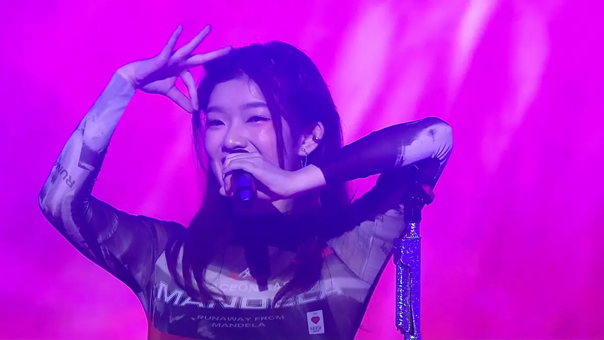 Hoonry以一身黑色透視上衣配紅色下擺牛仔褲造型亮相,帶來跳唱歌曲《未知》。