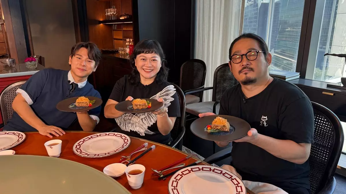 Agnes招呼金主廚品嚐「陳皮宴」。