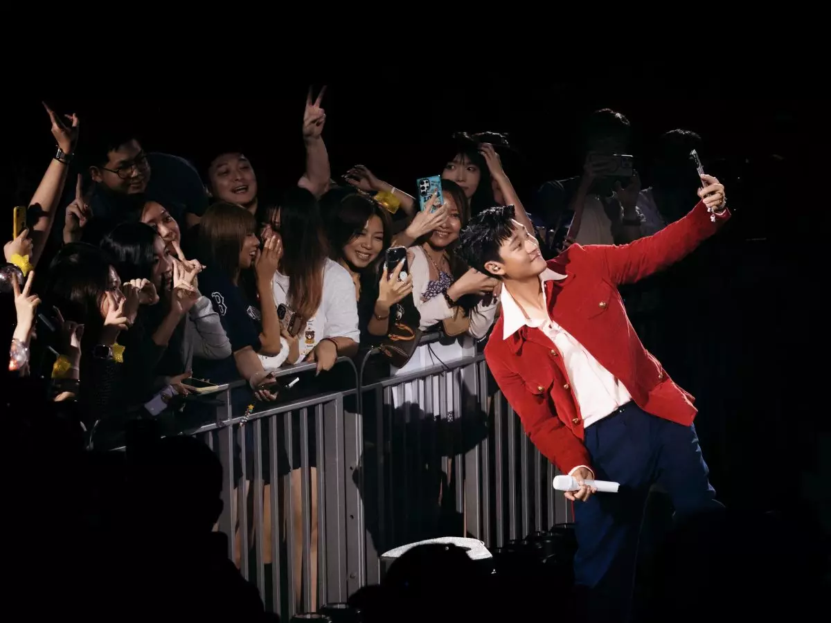 周興哲多次繞場跟四面歌迷自拍合照及握手。