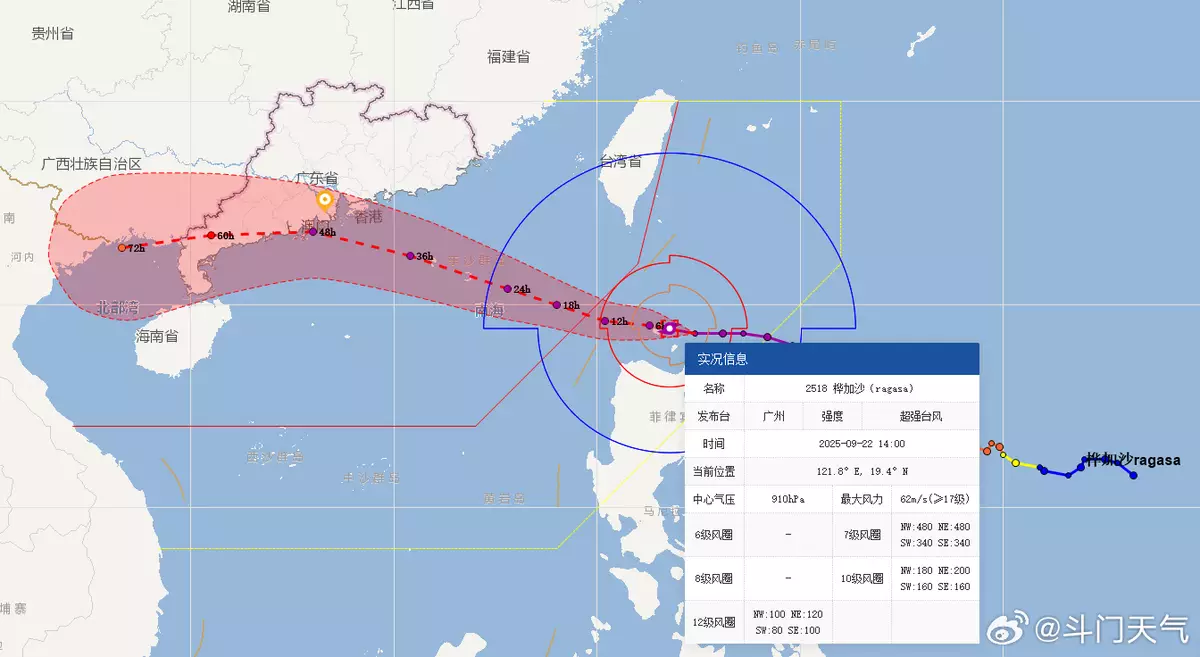 當局說,預測「樺加沙」星期二凌晨進入南海,星期三以強颱風或超強颱風級,在廣東中西部沿海地區登陸。