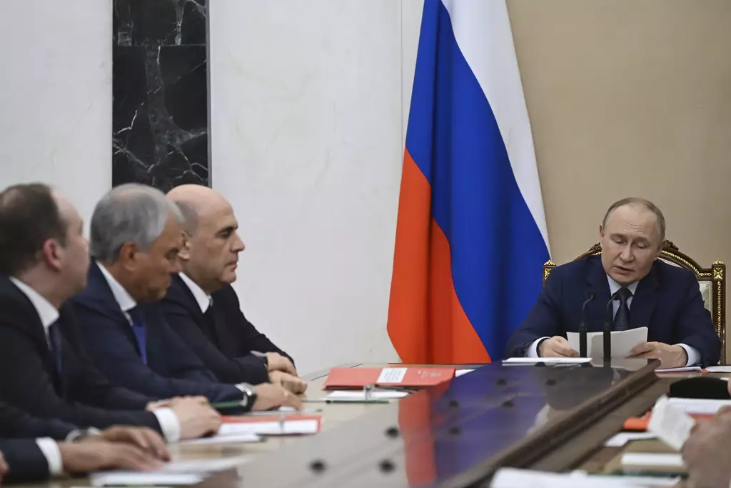 普京星期一在俄羅斯主持聯邦安全會議常務委員會議。AP圖片
