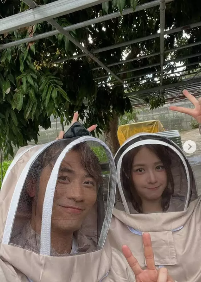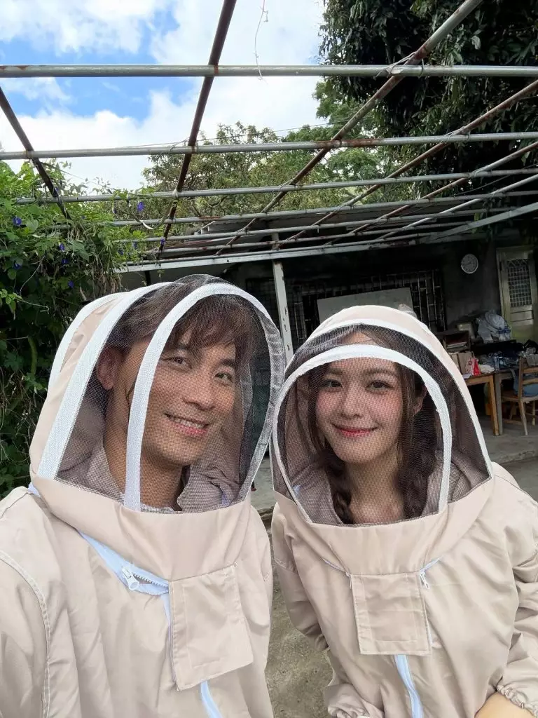 莊子璇全副裝備採蜂蜜。