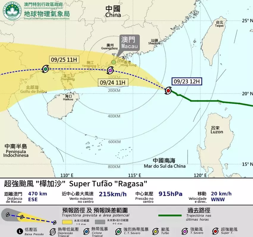 澳門在清晨5時改發3號風球,並預告下午5時改發8號風球。
