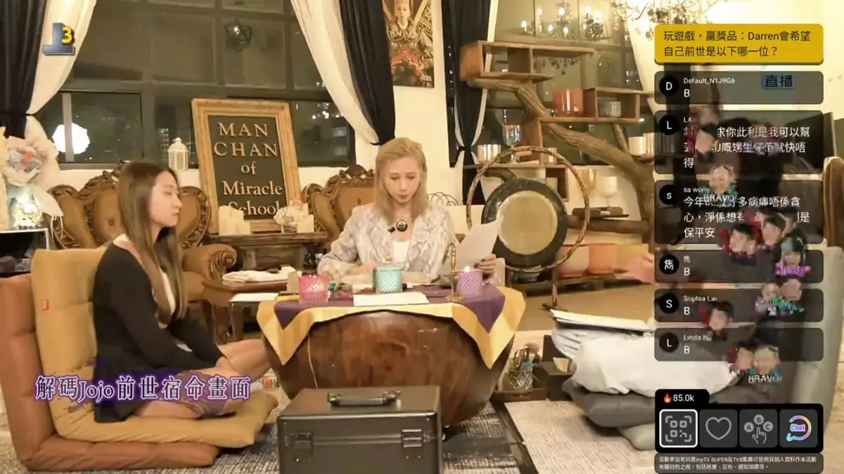 由梁思浩、黃紫恩(Jojo)及黃耀英(Darren)主持,TVB Plus(82台)靈異直播一小時節目《直播靈接觸》昨晚(9月22日)主題「宿世解碼」請來靈魂療癒師Man Chan擔任嘉賓,她會破解前世、今世、來世,作一次宿世解碼。