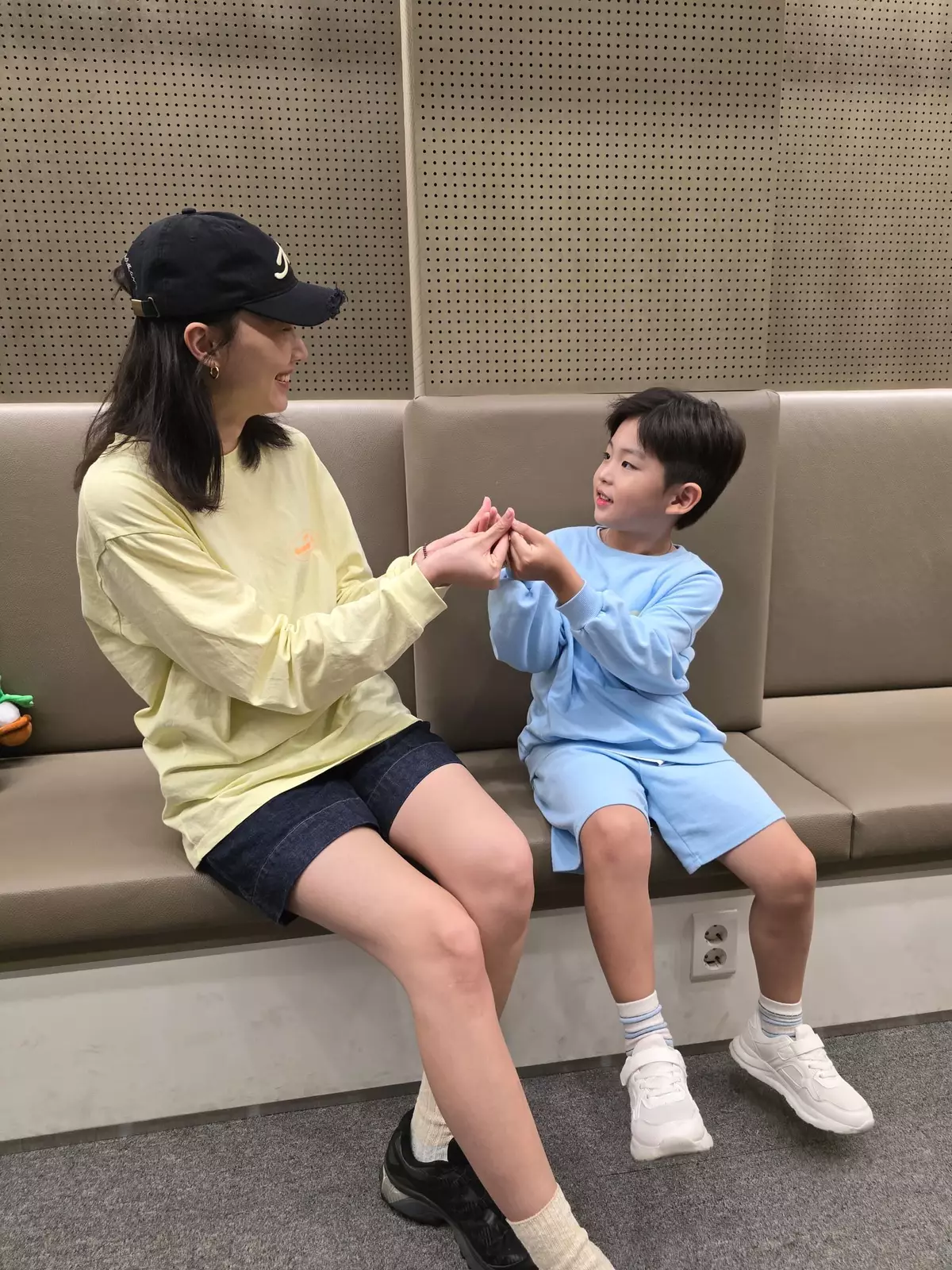 「兩母子」雖然未能用韓語溝通,但可以用身體語言。