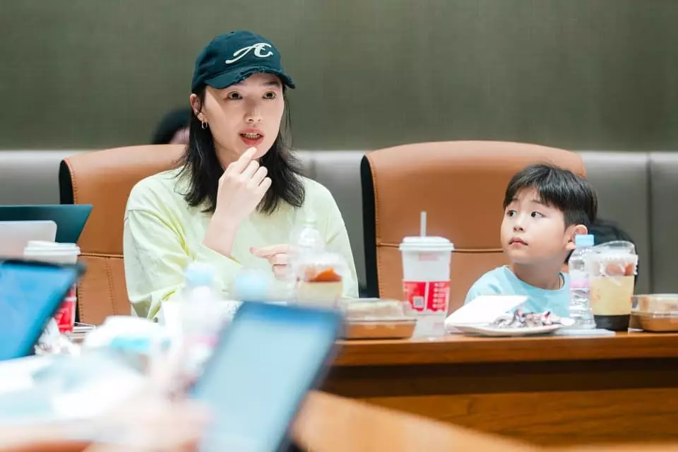 近日已入組跟團隊圍讀的Ceci,已開始用韓語及手語跟對手練習和溝通,以便自己及早適應角色演出。而今次其中一位對手便是飾演其兒子的小演員,兩人在圍讀前,特別安排了「兩母子」相處,培養感情, 雖然未能用韓語溝通只能用身體語言互補,但精靈可愛的小演員對Ceci這位媽咪很有好感,兩人還不時擺出可愛表情自拍,圍讀時已早有默契。
