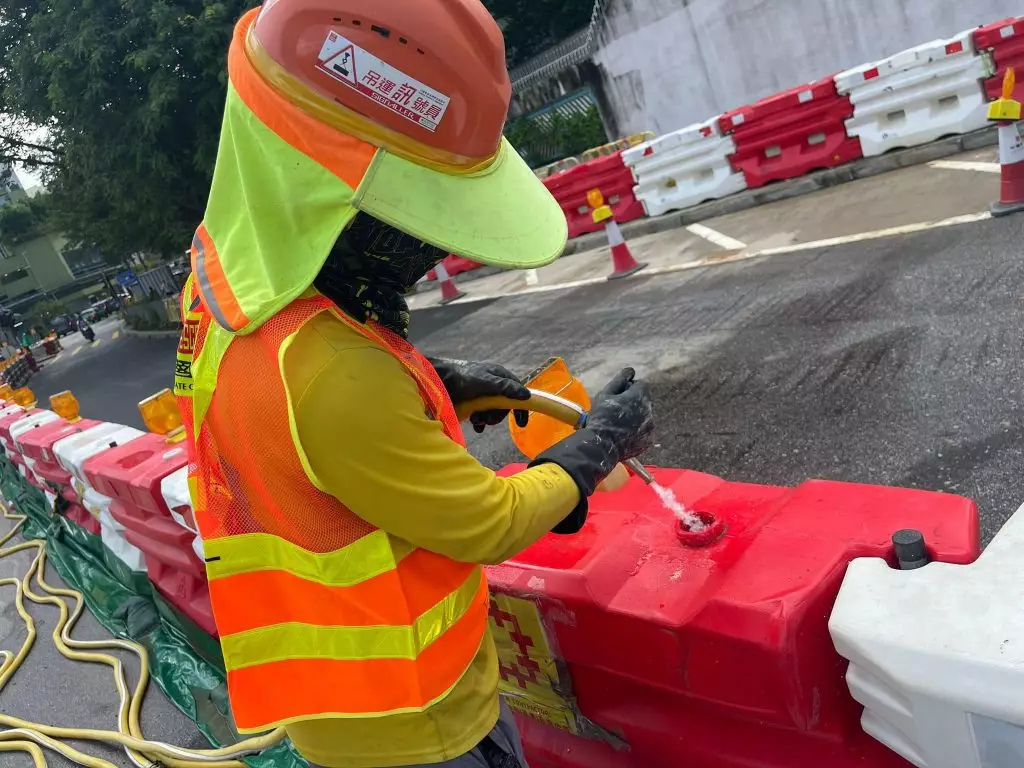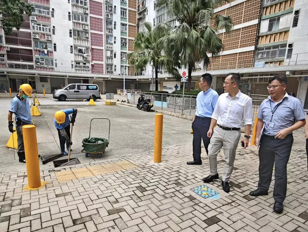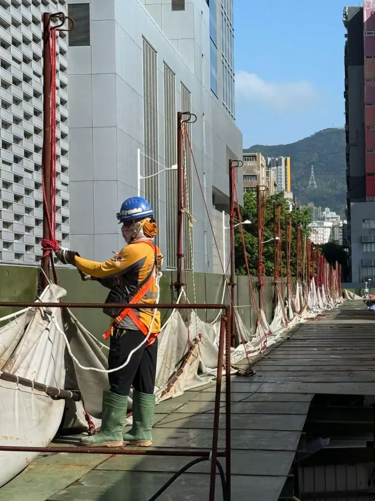 在房屋署方面,副署長(發展及建築)梁洪偉和副署長(屋邨管理)康榮傑分別帶隊與一眾助理署長和同事,分別到不同的地盤和屋邨了解大家的防風準備。梁洪偉和建築團隊主要視察地盤棚架安全,及各種機器的相應措施,如穩固吊船、將重型吊機的吊臂放置地面、容許天秤吊臂自由擺動等。同時,地盤拆除隔音布、加設水閘板、堆砌沙包等,用一切方法守護地盤安全。