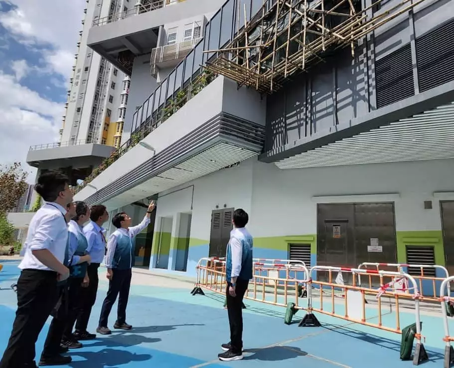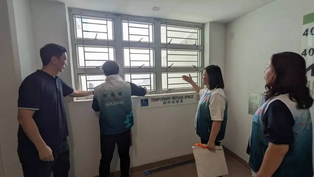 建築署是負責興建簡約公屋各項目的部門,建築署署長李翹彥聯同團隊去檢視各項目的抵禦颱風措施,包括各種加固工作、拆掉棚網以減低風阻等,同事也檢查了水碼水量,增加繫穩繩等,以抵擋超強颱風吹襲。