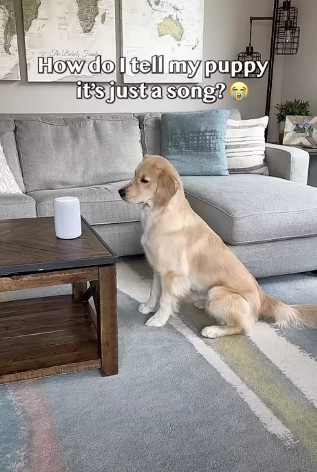 歌曲一開始就唱著「Turn around」而家中的金毛Ellie竟以為那是指令,便乖乖的轉圈。影片截圖