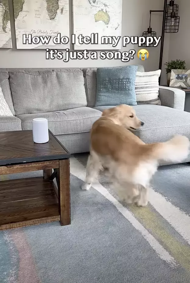外國一名飼主養了一隻金毛犬,在放歌時當歌詞唱到「轉圈」時,家中金毛立刻反應過來,開心地開始原地轉圈。主人忍不住笑出聲,但不知要怎麼告訴牠,那只是一首歌,而不是指令!