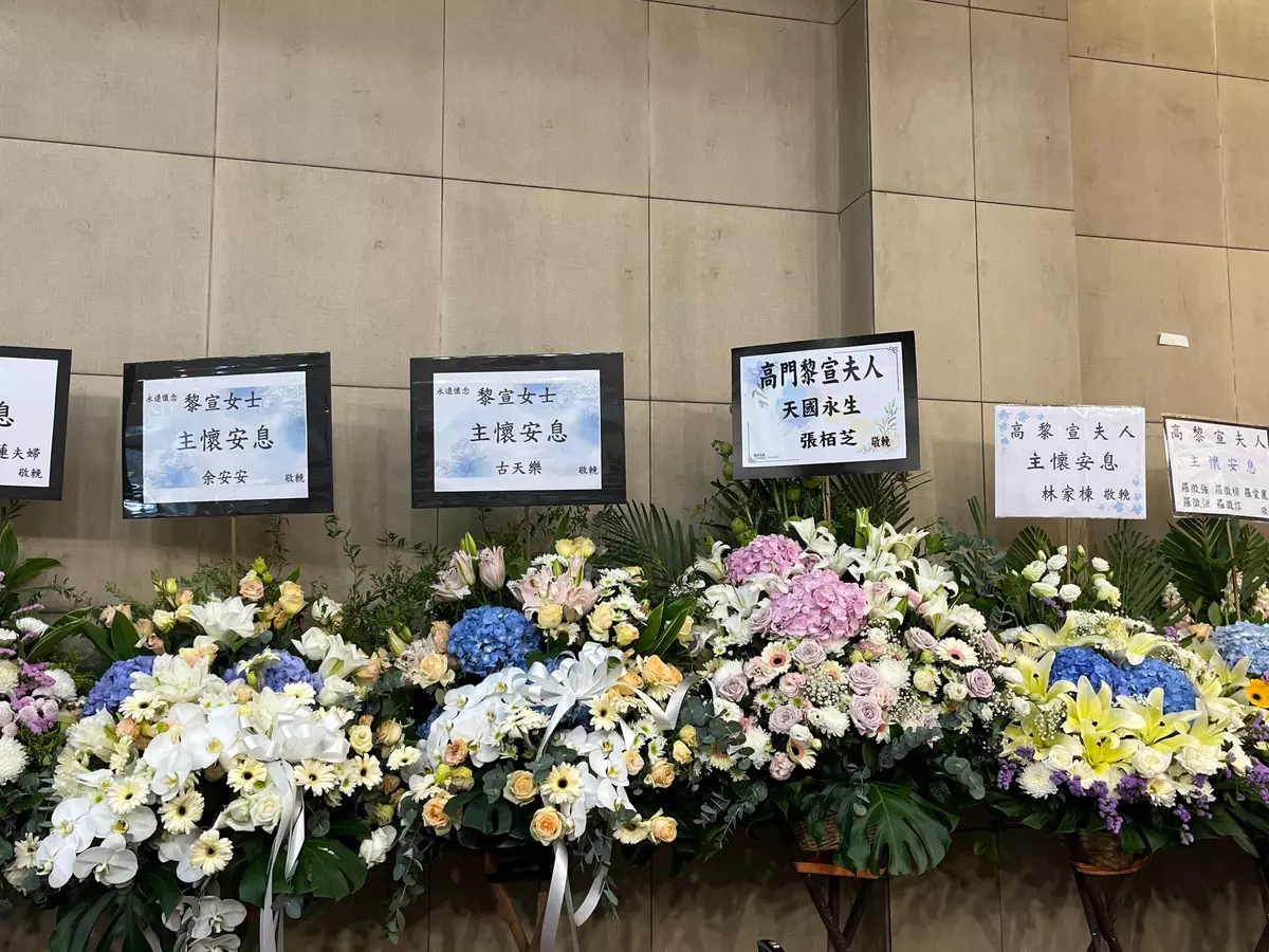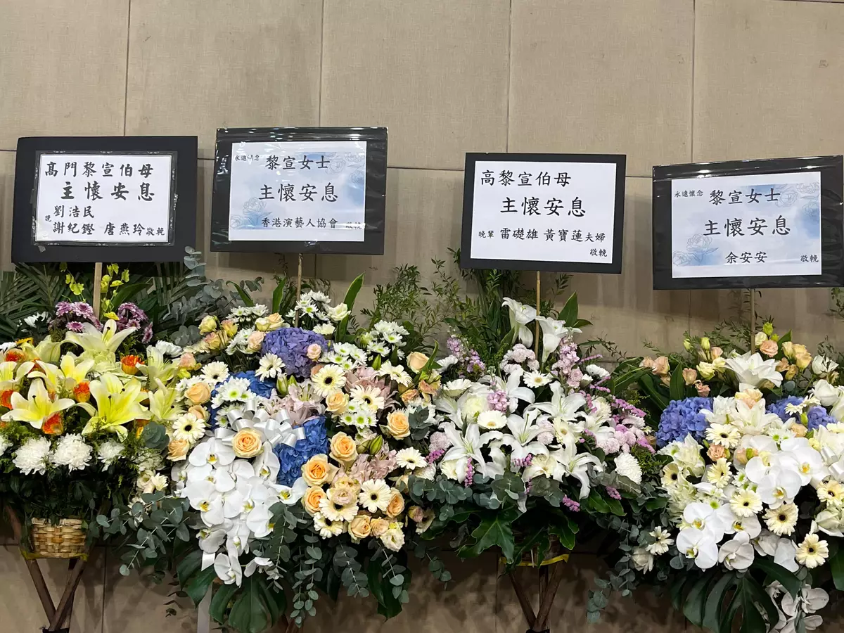 此外,不少圈中好友及親友亦致送花牌悼念,包括黎姿與丈夫馬廷強、黎姿弟弟黎嬰、張栢芝、古天樂、林家棟、林文龍與太太郭可盈等,足見黎宣在演藝界人緣極佳。