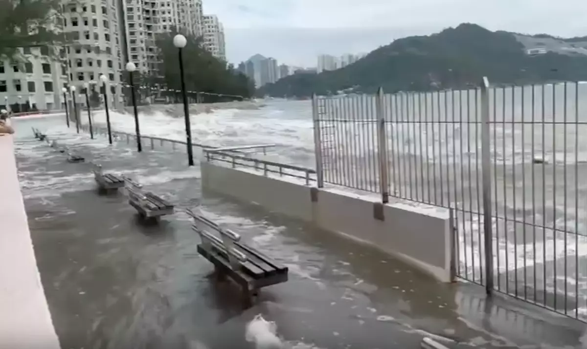 天文台說,海有極巨浪及湧浪,岸邊會出現越堤浪,東面及南面的海岸尤其顯著,市民應遠離岸邊及停止所有水上活動。