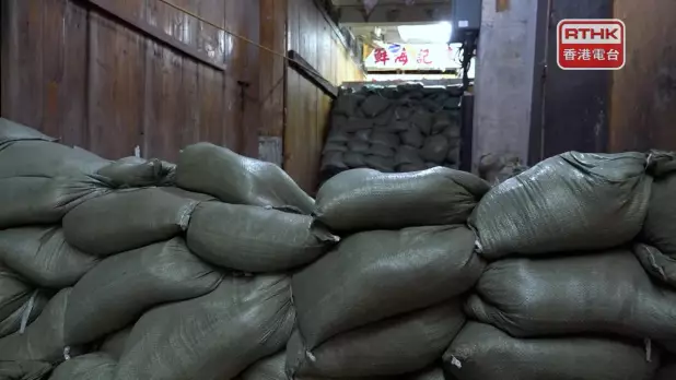 消防人員到場巡視,當局在接近岸邊的通道堆放大量沙包。大部分商舖亦在門口堆放沙包,以防海水湧入店內。