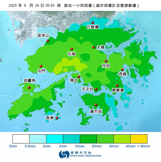 天文台發出新界北部水浸特別報告,說新界北部,尤其是八鄉及錦田一帶,正受大雨影響,過去4小時,該區錄得超過100毫米雨量。