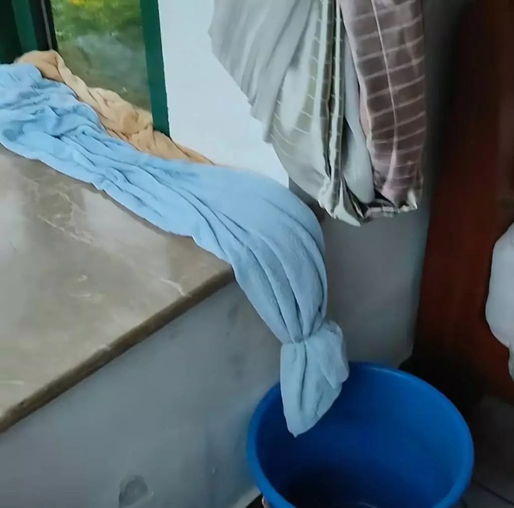 市民也可將毛巾塞於窗邊,並懸掛一端至水桶。毛巾吸水後,水便會滴入桶中。雖環保但需定期擰乾,較適合輕微滲水情況。