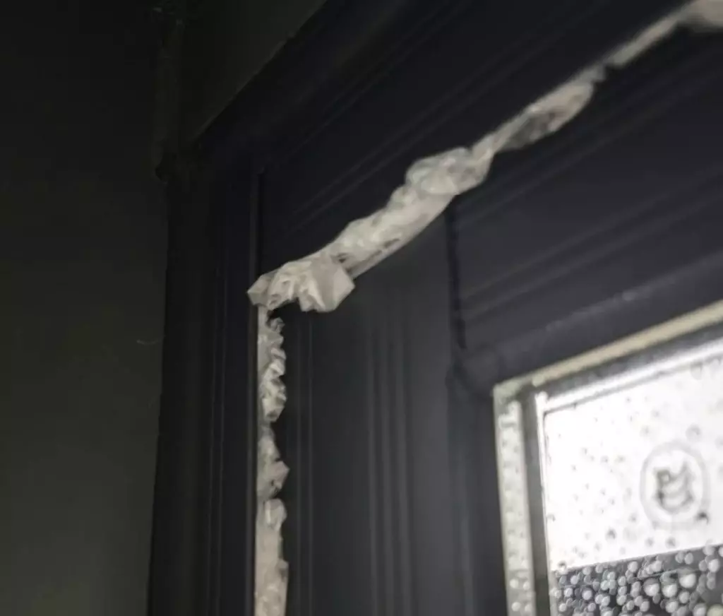 細小窗縫可用保鮮紙搓成條狀堵塞;較大縫隙則可將垃圾膠袋夾於窗框。專業鋁窗防漏工程圖片