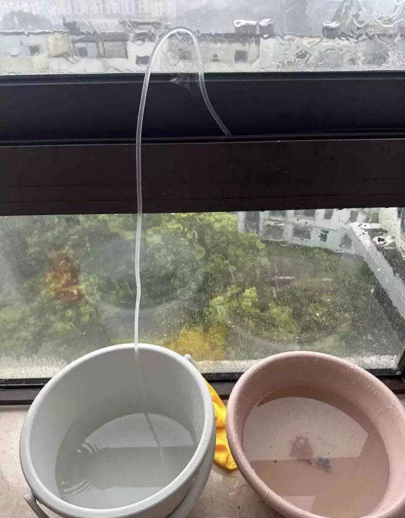 若窗邊積水,可將紙包飲品附設的可彎曲飲管放置窗邊,並以水桶接水,運用虹吸原理(液體壓力差自動流動)將積水導出。有網民反饋,她使用這個方法足足排了兩桶水,成效十分顯著!