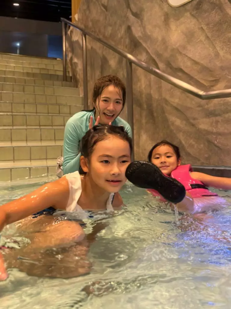 Maggie連發多張與小朋友互動的照片,可見她全程投入陪玩,不僅陪泳、潑水,更親自餵食小食,盡顯耐心。不過,她事後笑稱自己反而更像小朋友:「由於我考媽咪牌失敗,所以都係由細路女湊返我😂😂結果我係玩得開心過啲小朋友😂😂」並感嘆母親的偉大:「辛苦各位媽咪,母愛真偉大,生仔要考牌🙌🏼」幽默中帶敬意。