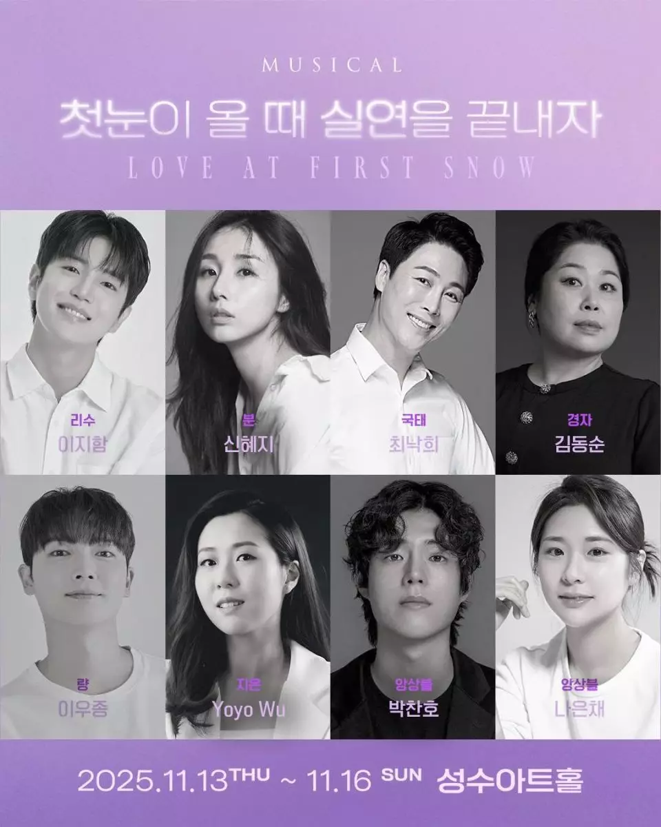 今次劇本原型是曾在2021和2022年進行過兩次階段演出的音樂劇《今年初雪,把失戀完結!》,相隔三年改編成韓語版後再度回歸,導演一休預告2025年版的《初雪》會更貼緊韓國的真實面貌,加上有韓國男團人氣偶像及資深音樂劇演員的加入,會比三年前的演出更加精彩。