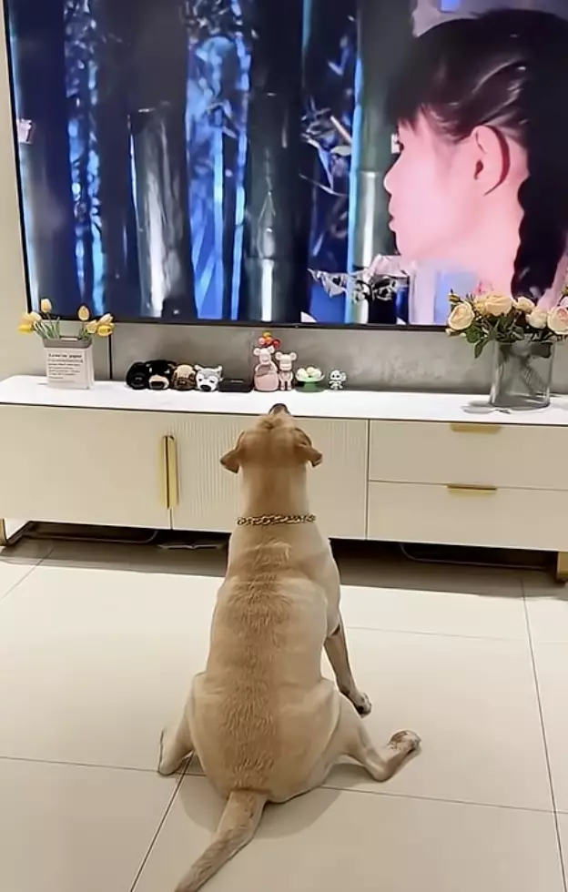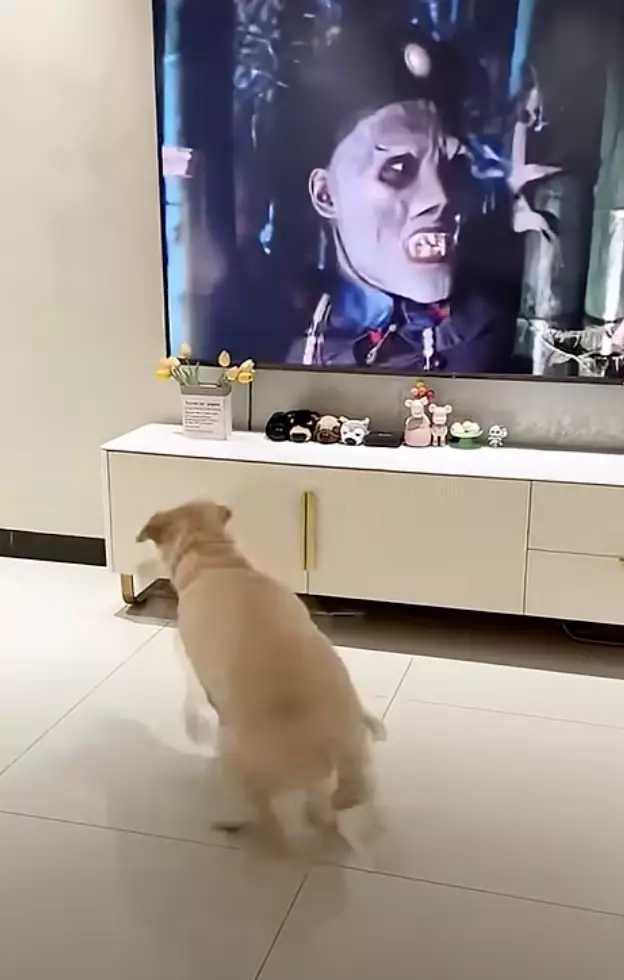 這天,一名網民在電視上播放殭屍片給拉布拉多狗狗看。