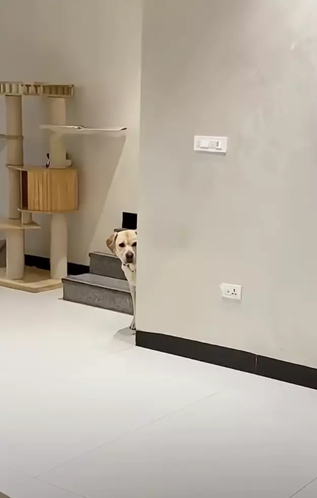 不知大家有沒看過殭屍片?每次殭屍出來時總會讓人嚇一大跳,近日有一隻拉布拉多也成為受害者之一。有趣的是,躲在牆角的牠,還探出頭確認影片中的殭屍離開沒有,模樣超萌。