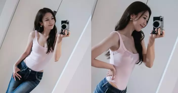 「東張女神」何沛珈對鏡自拍狂擺甫士 連身衣配牛仔褲晒窈窕曲線