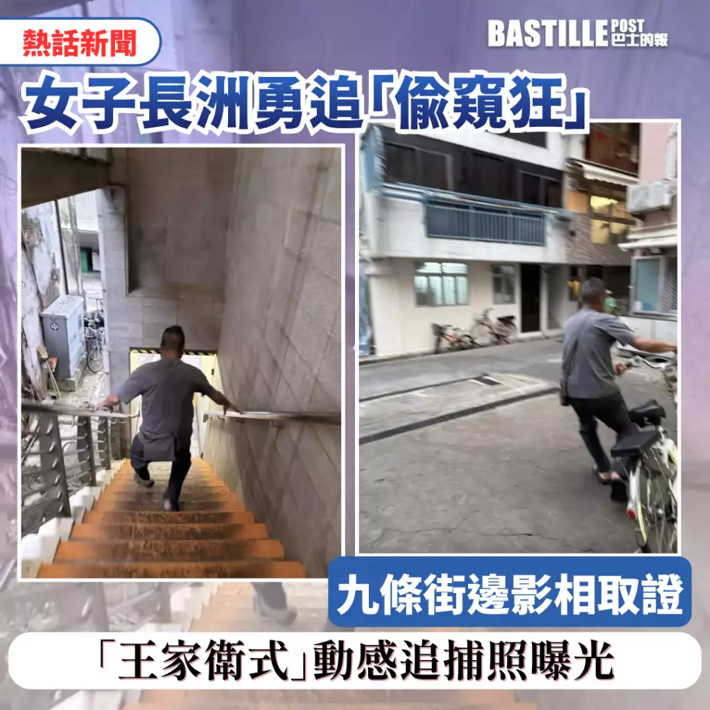 男子跑到樓梯底部後,迅速奔向預先停泊的單車,並在長洲狹窄巷弄中穿梭逃走。事主緊追不捨,照片記錄了兩人距離逐漸拉遠的過程。但照片因劇烈晃動,男子身影越來越小,最終消失在鏡頭前,追捕未能成功。