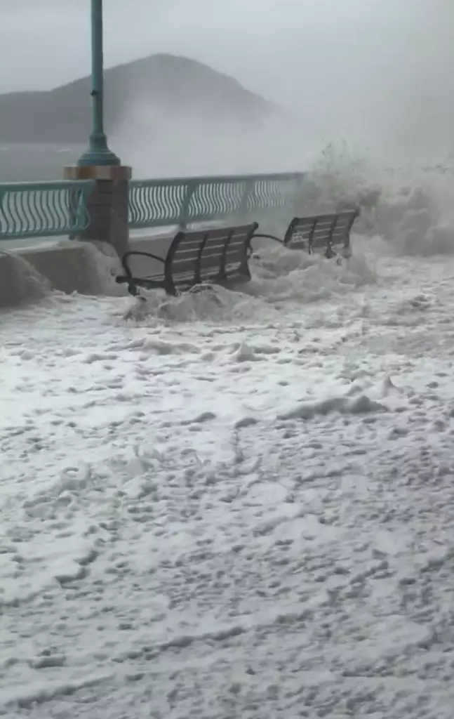 隨即湧起數米高巨浪沖上岸,2名女子連同小童3人走避不及被巨浪淹沒,現場傳出驚呼聲。