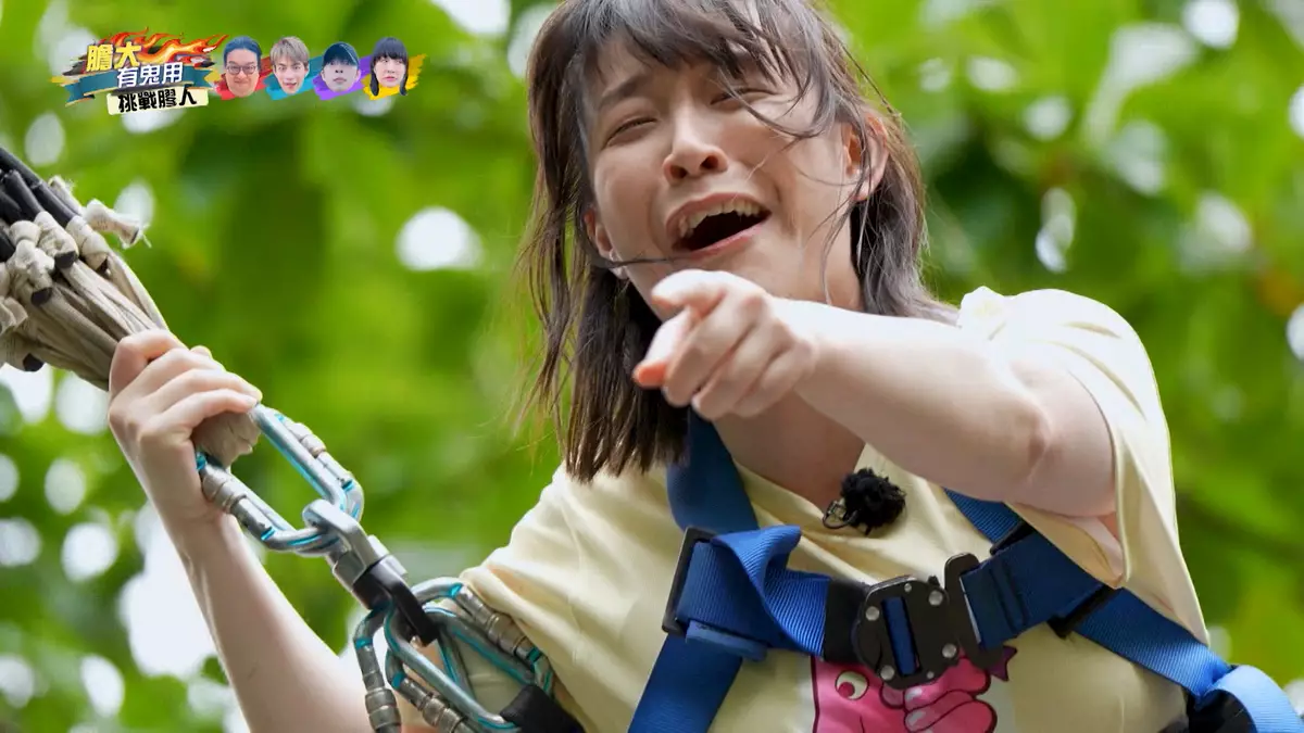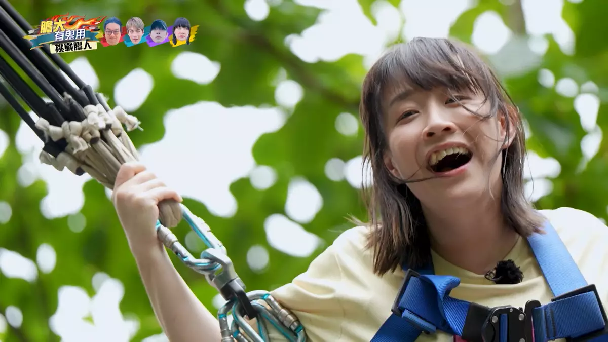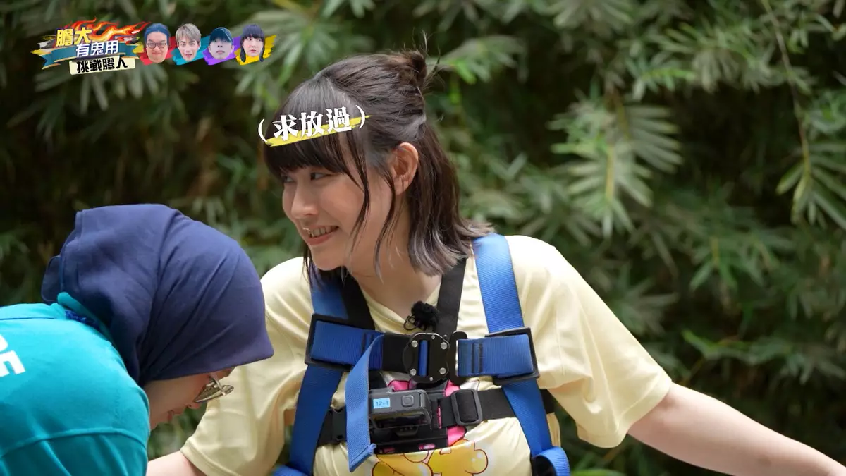 最後,到阿正挑戰,當職員幫她扣上安全繩時,阿正求職員手下留情,示意把她拋得「Very low, very low」就可以,更說:「I am really scared, but I have to win. Please help me!」雖然阿正被拋上空中之後,與Jeffrey一樣失禁式尖叫,但卻不忘顧及形象,向鏡頭大叫:「等陣先,唔好畀大頭我呀,好醜呀!」