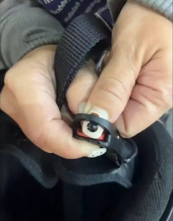 從事主上載的照片可見,大拇指的美甲是一隻立體造型的小狗,而凸出的黑色部分正是狗狗的鼻子,剛好卡進頭盔安全扣的孔位。事主曾嘗試用力拉扯,但始終未能成功,形容當時「前進後退都兩難」。消防員到場後,用剪刀剪開安全扣,這才協助她成功脫困。