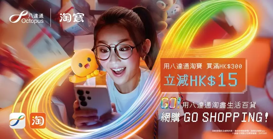八達通登陸淘寶香港站,攜手推廣電子支付,獨家優惠消費滿300元即減15元。