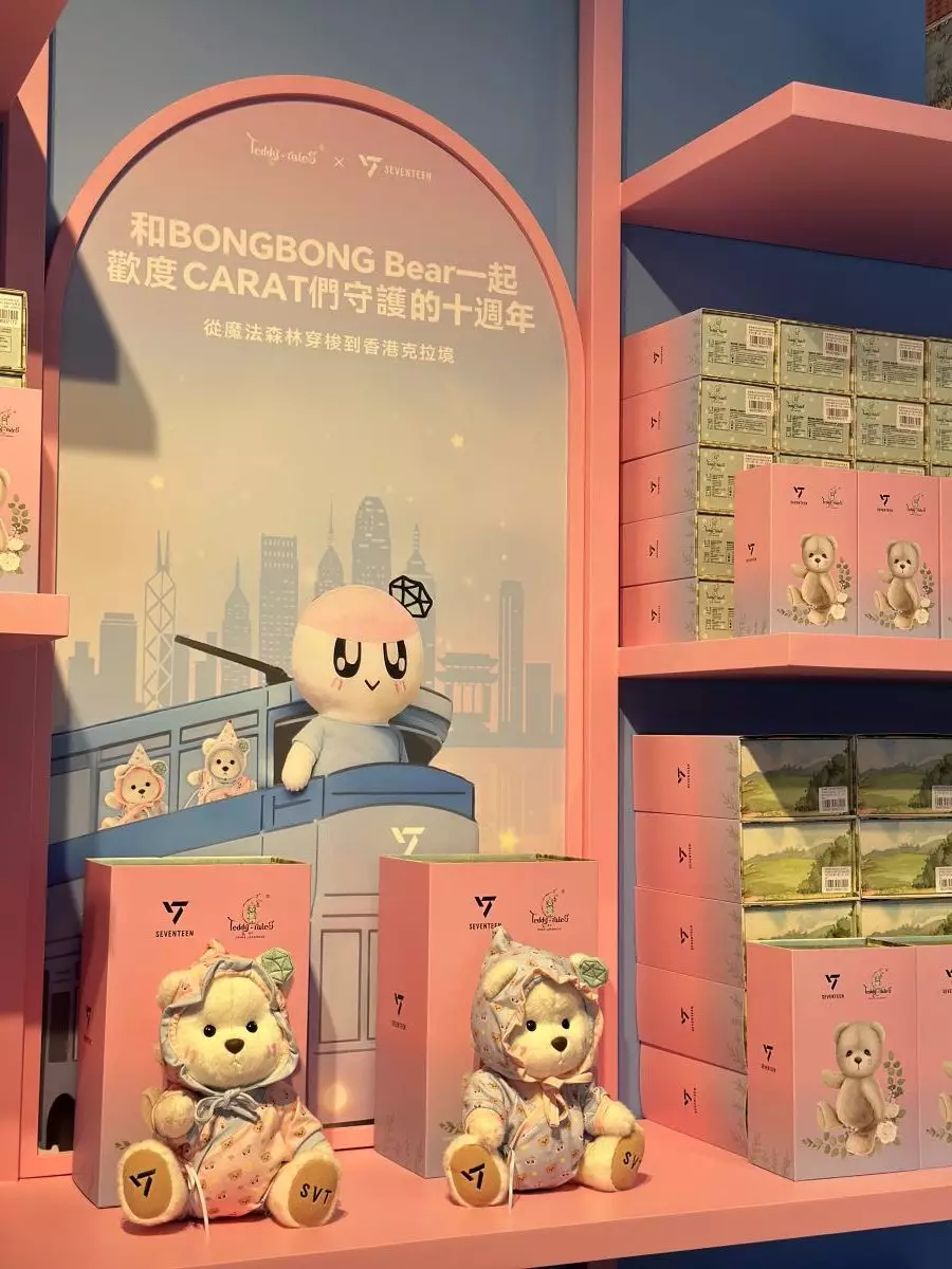 討論度爆表、極具萌感的 Teddy Tales 與 SEVENTEEN 展開夢幻聯乘!為慶祝 SEVENTEEN 出道十週年,品牌的泰迪熊特意與 SEVENTEEN 吉祥物 BONGBONGEE 聯名,打造主題服飾,在熊頭上加上CARAT造型,細節滿滿!聯名商品將自即日起於 AIRSIDE 商場限時發售,CARAT們務必把握收藏機會,將這份十週年的特別紀念帶回家!