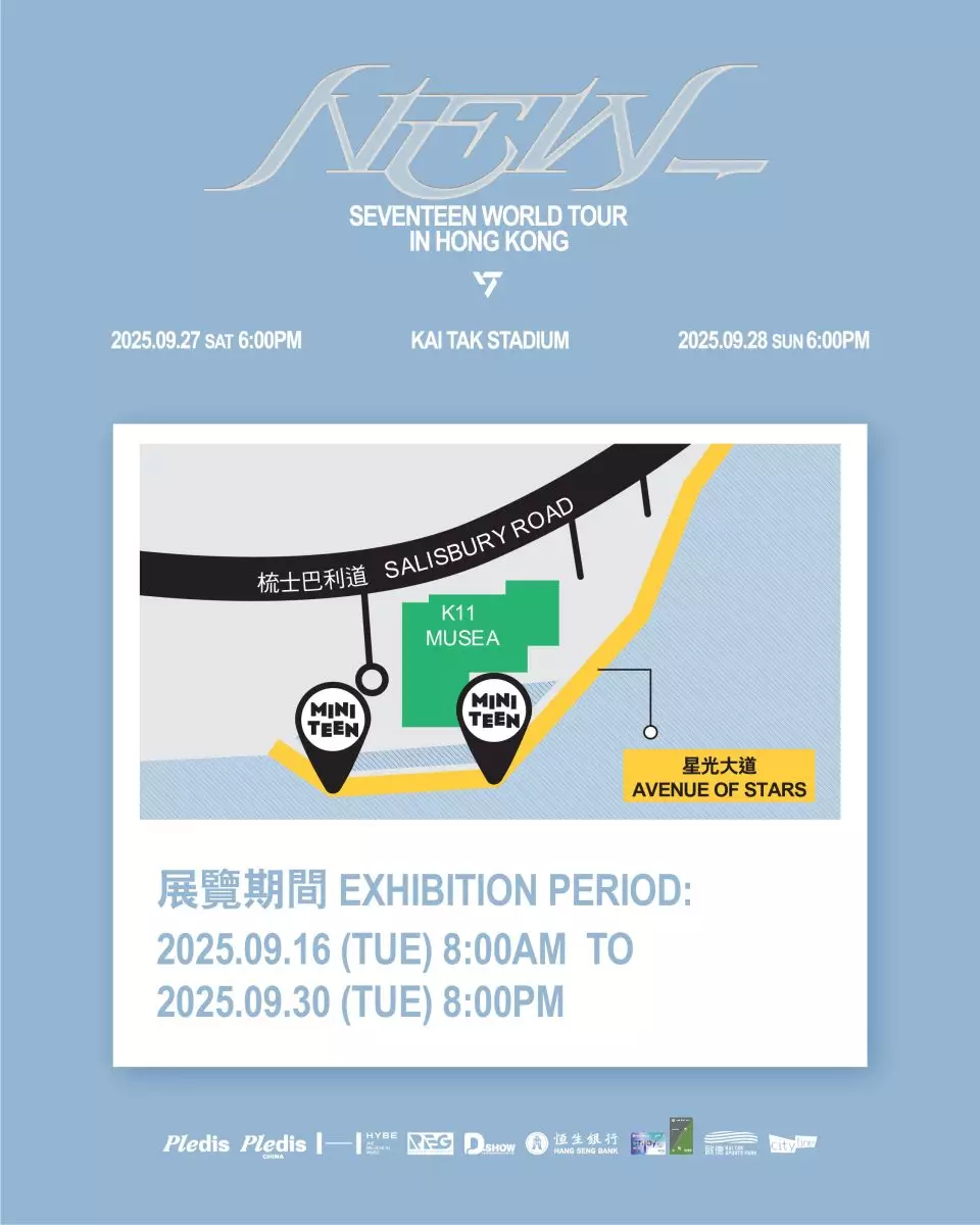 SEVENTEEN 13位成員的專屬MINITEEN立體打卡公仔已正式登陸香港星光大道!超人氣官方角色完美捕捉每位成員的獨特魅力與鮮明個性,並首度化身為大型藝術裝置公開亮相,等待全港CARAT前來親身互動、拍照留念!集章打卡台將會設置在星光大道的中段,計劃前去星光大道的CARAT切勿錯過!