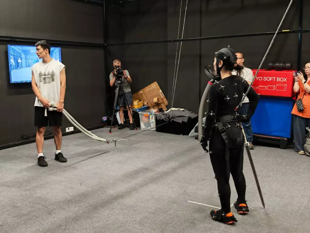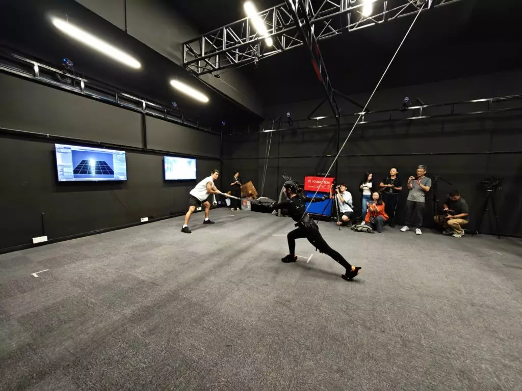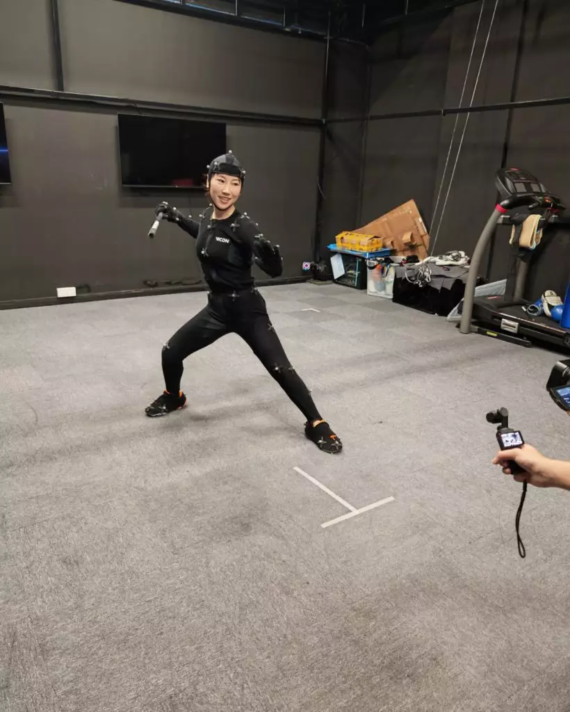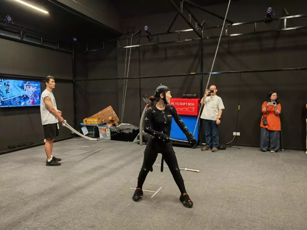 工作人員在進行游戲《明末:淵虛之羽》的武術動作捕捉工作。