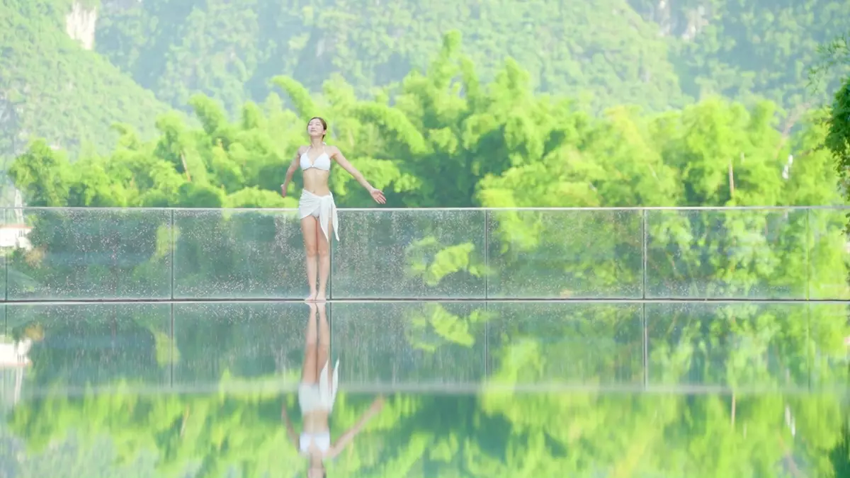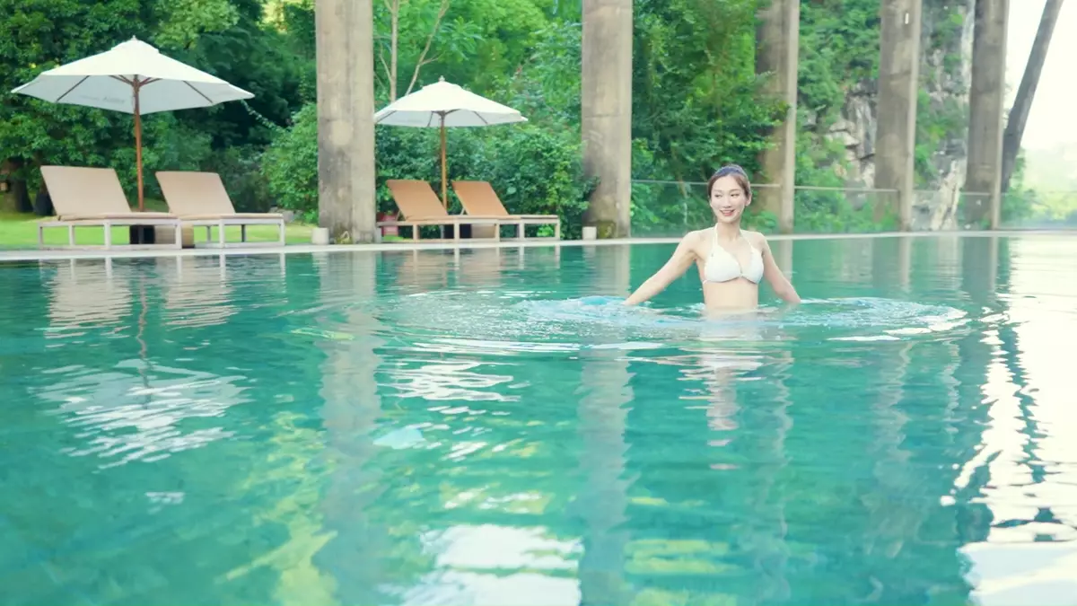 今晚(26日)一集,Cathy則會身穿白色三點式、在飽覽桂林美景的工廠式酒店泳池內暢泳。