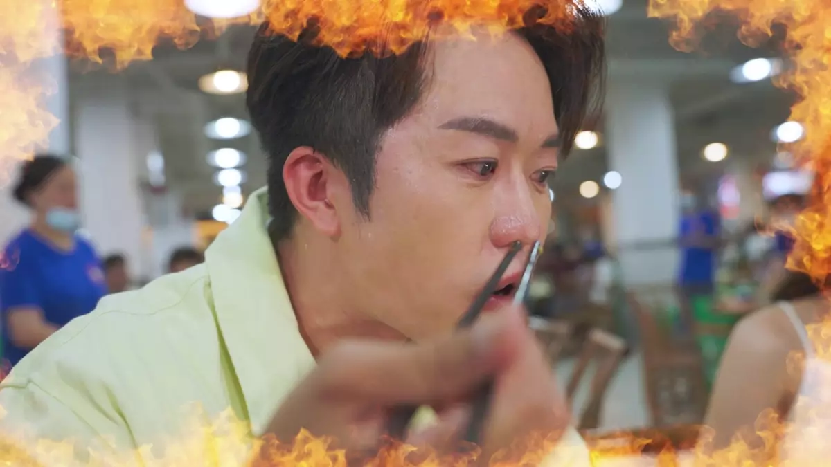 三人到當地一間網紅店品嚐以辣聞名的湘菜,Leonard食辣食到汗流浹背、嘴唇紅腫。