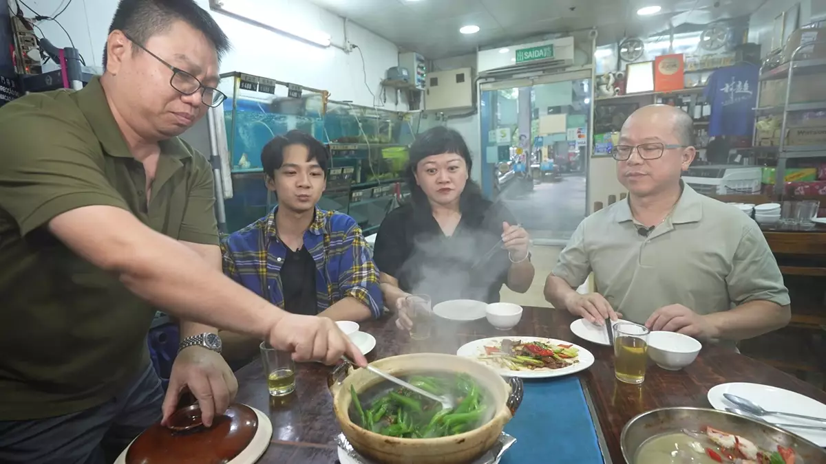 此外,昨晚食評人謝嫣薇(Agnes)、施焯日(Arthur)過澳門,會合有「咕嚕肉之神」稱號、米芝蓮大廚譚國鋒師傅,試食一間當地大廚都幫襯的消夜飯堂。他們分別試了洋蔥焗艇仔蝦、沙薑爆豬脷、家鄉啫啫芥蘭煲及家鄉炒米粉。當Agnes食到豬脷時猛讚師傅刀工好、炒得有鑊氣時,正吃得津津有味的譚師傅,一時真情流露說︰「兩個老闆都炒到餸㗎,唔係X噏㗎……死喇。」不慎破防爆粗,引來各人大笑。