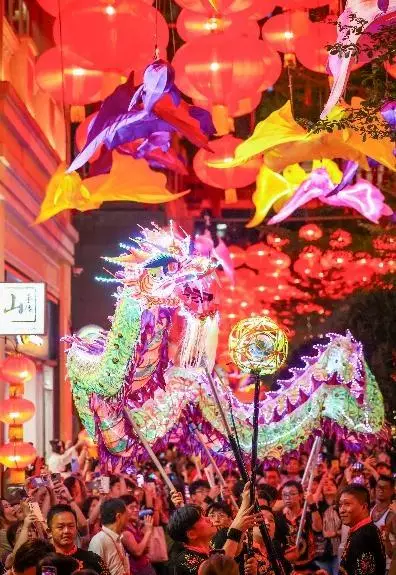 表演將於晚上8 時 30 分由利東街中庭出發,沿皇后大道東舞動至莊士頓道入口,再返回中庭,全程約 45 分鐘。巡遊途中,LED 夜光龍不僅與醒獅及鑼鼓隊精彩互動,並設有多個定點表演環節,讓觀眾沉浸於傳統文化的澎湃活力之中,一同為香港市民及各地遊客獻上最熾熱的節日祝福!