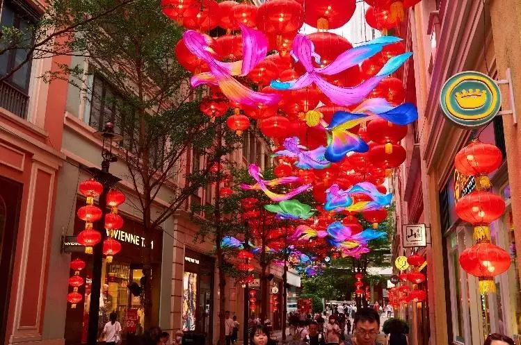為與市民及遊客共慶月圓佳節,利東街誠邀大家於10月1日至 10 月 26 日,蒞臨「喜魚映花月」戶外綵燈會,逾200米長的林蔭大道將懸掛超過800 盞五彩繽紛的中式傳統燈籠,今年更特別引入寓意富貴與繁榮的金魚燈籠,燈籠魚身閃耀生輝,其魚尾舒展如花瓣綻放,隨風輕曳,在光影間流轉斑斕色彩,匯聚成璀璨彩燈海,寓意著「年年有餘」、「花好月圓」;錯落有致的層次佈局,映襯著利東街林蔭大道兩旁優雅的歐式建築,為灣仔鬧市添上一抹絢麗而詩意的節慶色彩,令人沉醉於這片融洽歡欣的中秋氛圍之中。