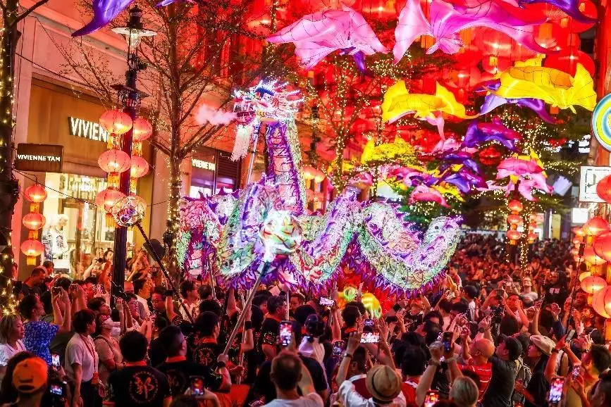 利東街與遊客歡度中秋佳節,今年中秋節積極呈獻「喜魚映花月」綵燈會,為各位帶來一場絢麗奪目的視覺盛宴。由 10 月 1 日至 10 月 26 日,逾 800 盞中式傳統及金魚燈籠將會點亮整條利東街,金魚燈飾閃躍生輝,靈動魚尾如花瓣般隨風搖曳,在皎潔月色映照下,宛如群魚悠游戲水,為灣仔繁華鬧市添上一抹浪漫詩意,寓意「年年有餘」、「花好月圓」。承載著中華傳統的美好祝願,與中秋團圓之意完美呼應。中秋節當日(10 月 6 日),利東街將迎來壓軸盛事——「LED 火龍舞鼓賀中秋」。屆時,郭氏功夫金龍醒獅團將舞動 18 米長的幻彩夜光火龍,穿梭於利東街林蔭大道,將配合震撼噴煙效果及追珠互動,在鑼鼓喧天的熱鬧氣氛中騰雲駕霧、巡遊起舞。這條融合現代科技與傳統工藝的夜光龍,將讓市民及遊客可以近距離感受非遺文化的澎湃活力,沉浸於節慶的熾熱氛圍。
