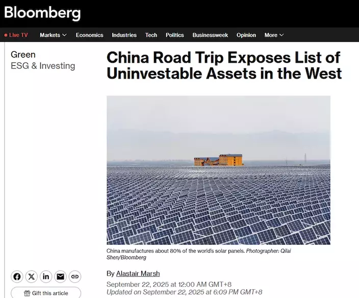 彭博社認為,中國在能源轉型中的優勢,正讓「許多國家」考慮與之建立更緊密的聯繫。中國如今已是引領世界走向低碳未來的最強勁引擎。