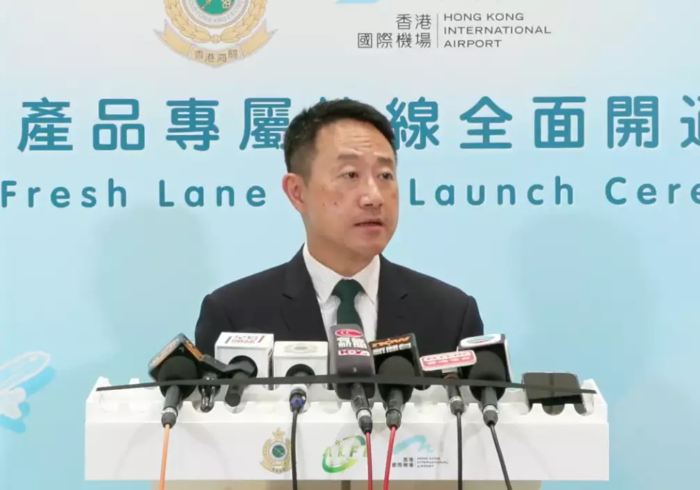 空陸鮮活產品專屬快線全面開通,產品可經香港國際機場及港珠澳大橋由國外直送內地。海關關長陳子達表期望,快線可進一步促進兩地經貿合作,同時鞏固香港作為國際物流樞紐的地位。
