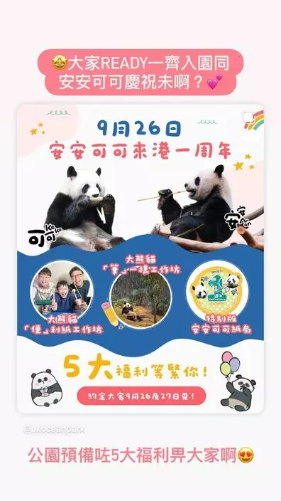2025年9月26日,安安可可來港一周年啦!海洋公園ig截圖