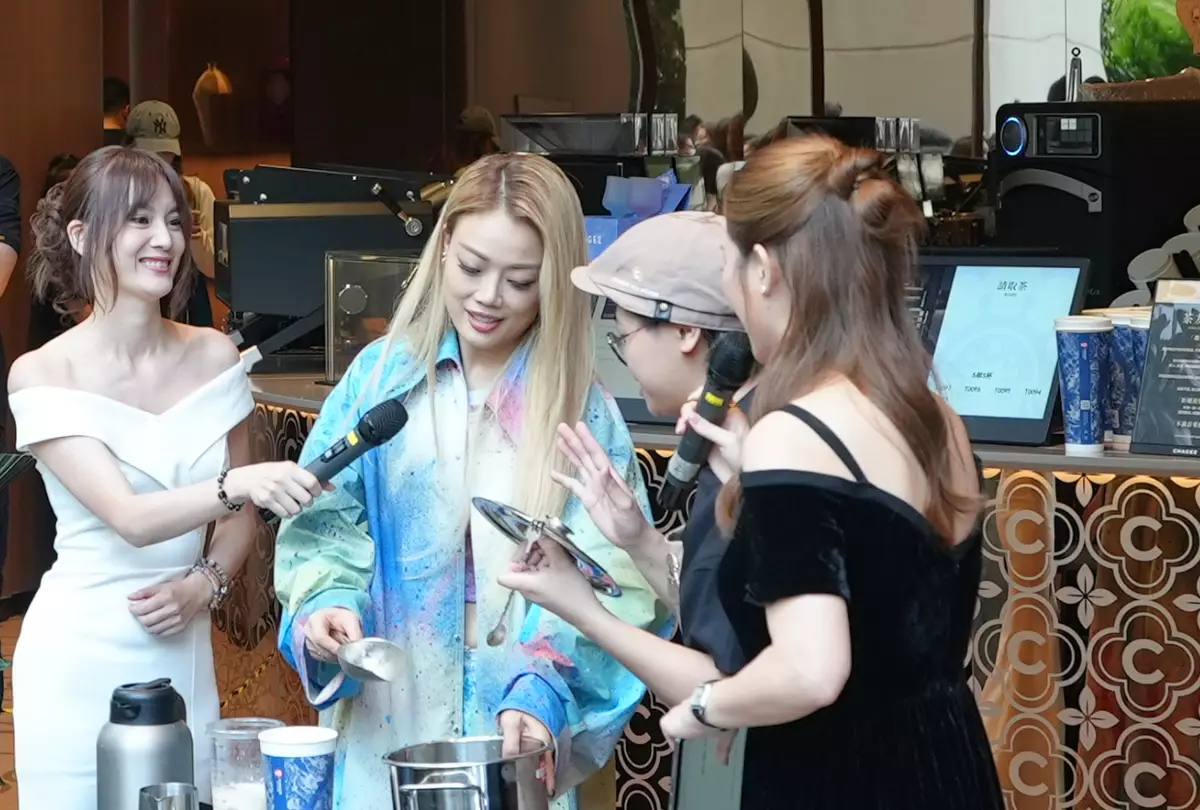 現場所見,容祖兒穿上鮮明色彩的服飾登場,親手攪拌茶湯,並即席舉杯品飲,隨後抽出幸運號碼與市民互動,令一眾粉絲及到場顧客歡呼不已。品牌亦安排嘉賓近距離體驗不同茶飲,進一步帶動現場氣氛。