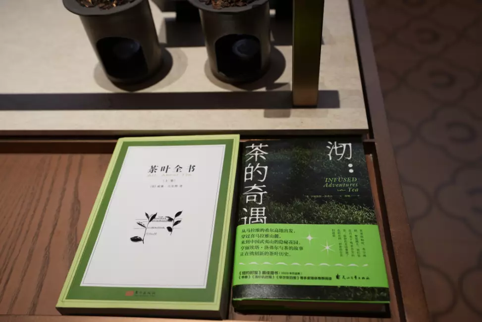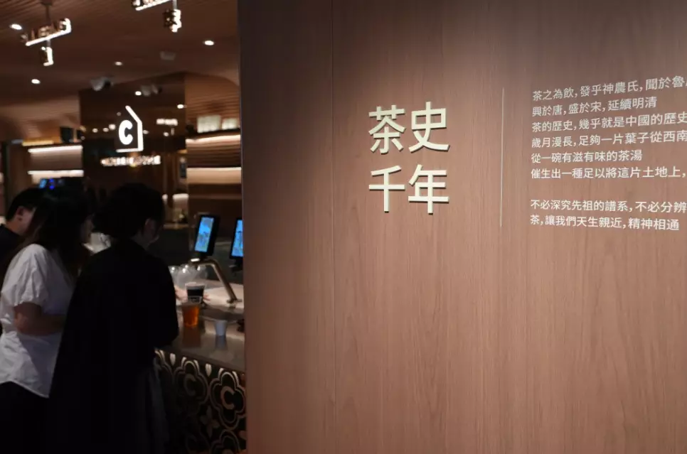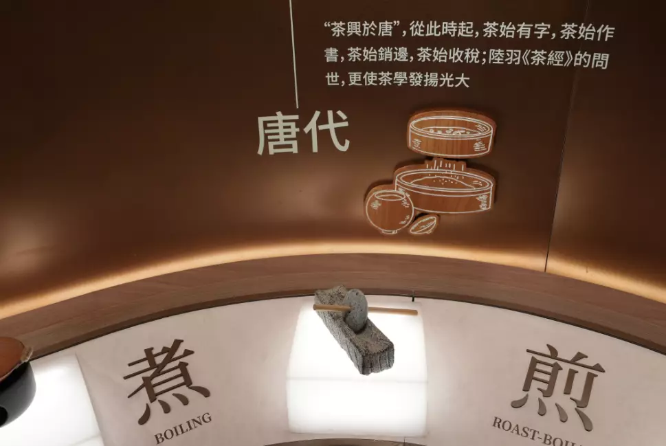 店內二樓設有「千年茶史」主題牆,展現唐代茶文化元素。巴士的報記者攝