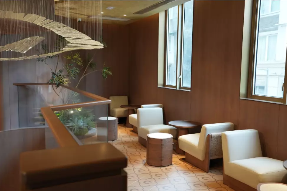 霸王茶姬在香港開設面積最大的「茶倉」,樓上空間裝飾雅致。巴士的報記者攝
